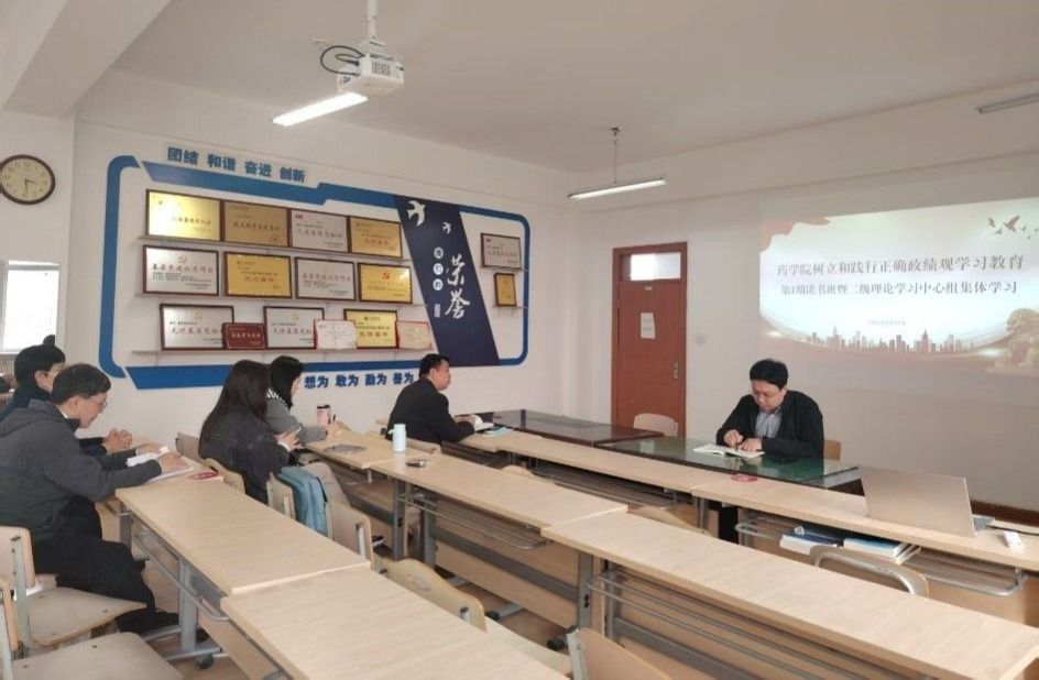 药学院党总支部召开党纪学习教育第3期读书班暨二级理论学习中心组学习会议为深入推进党纪学习教育,按照省委、市委及学校党委党纪学习教育相关要求,药学院党总支部召开党纪学习教育第3期读书班暨二级理论学习中心组学习会议。学院领导班子成员、党总支部委员、党支部书记及组织员参会。会上,刘旭书记领学《习近平关于全面加强党的纪律建设论述摘编》中的重要论述,主题1:严明政治纪律,自觉维护党的团结统一。王冠男院长领学《习近平关于全面从严治党论述摘编》...